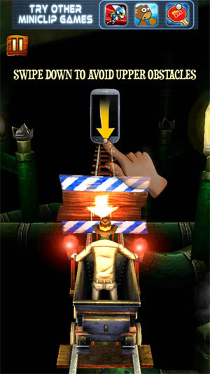 滑动你的手指,让小矿车跳动起来,并且收集更多的宝藏吧。