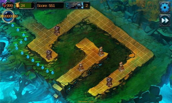 3. 面对前来的敌人,使用你的防御塔消灭他们,享受战场对战的乐趣。