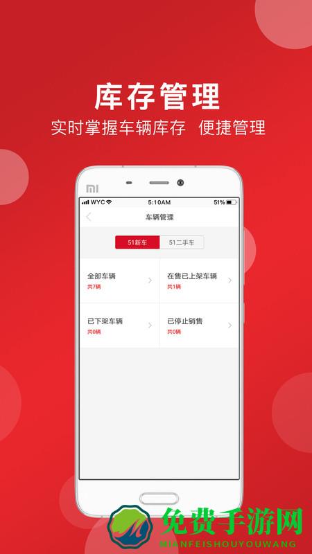商户可发布店内的车辆信息和库存情况,车型数据同步到51车客户端,方便客户下单预定。