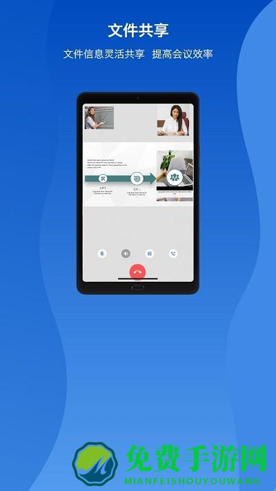 在功能方面,该APP主要包括:组织架构、视频呼叫、响铃式接听、分屏模式设置、文件共享同步查看、云平台参会等。