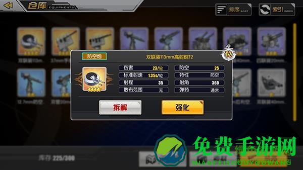 首先是驱逐舰上使用的主要装备—鱼雷和防空炮。防空炮的防空数值加成相同,不同的主要是伤害、射速和射程,考虑到防空的效果,小编认为有限射程,这样在敌方舰载机接近的时候,就可以提前发现并进行攻击。而伤害与射速遵从了速度越快伤害越低,速度慢伤害高的原则,所以在真正选择的时候可以慢慢斟酌。