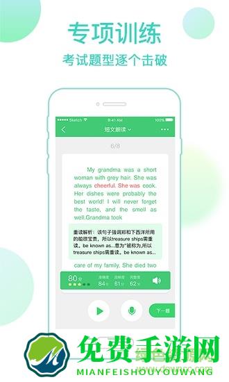 精选语篇内容,支持逐句模仿跟读和实时评测,模仿良好的发音习惯