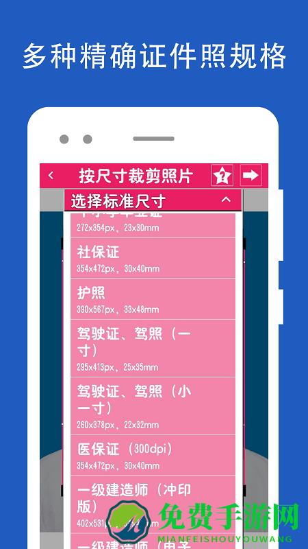 规格齐全:按规格或自定义自动裁切照片,智能证件照轻松制作;包含国内外多种证件照尺寸模板