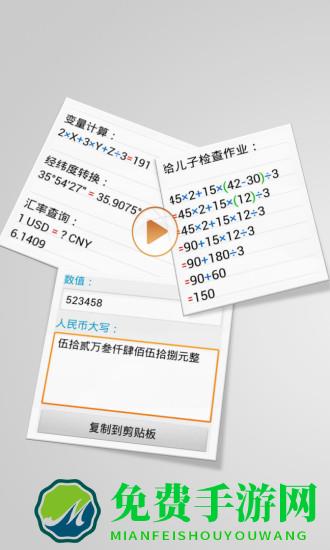 人工智能计算器AICalculator是一款接口简洁、功能强大、多点触控、支持运算式、支持单位转换和即时汇率换算的文本计算器。而且具有真人发音的功能,不管是日常的简单数字计算还是函数计算及单位转换等这款软件都能胜任。计算管家独创的文字编辑,快速备注不会忘;千分符、万分符,分隔数字看得清了财务算账不用愁,求和统计解您愁。