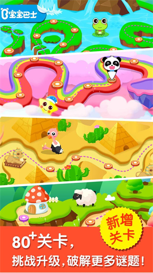 【全新场景】:4大主题,40+超萌关卡,宝宝一次玩过瘾;