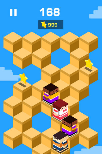 玩家通过操作方块人物在方块打造的路途中前行,路途中有奖励,拿到得分更高。