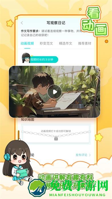 2、动画视频:各种有趣的动画视频免费观看,帮助大家快速打开写作思路;