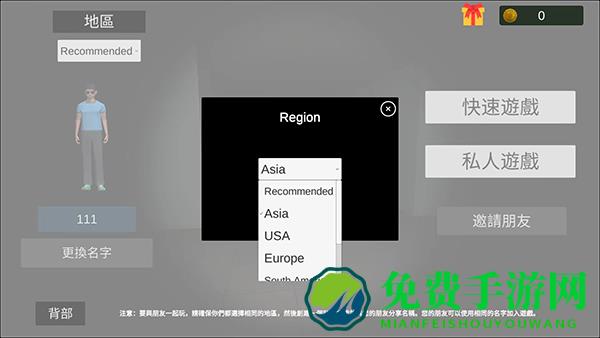 接着选择需要联机的区域包括Asia亚洲、USA美国、Europe欧洲等等