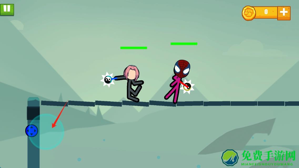3、灵活走位攻防:战斗时自由移动、躲闪陷阱与机关,通过反复跳跃寻找战机,结合道具使用,全方位展现格斗技巧,击败对手赢得胜利。