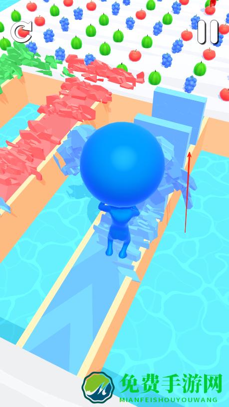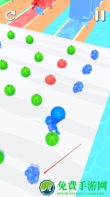 1、点击屏幕移动人物,什么颜色的小人就收集什么颜色的水果,收集的越多,小人的脑袋越大。