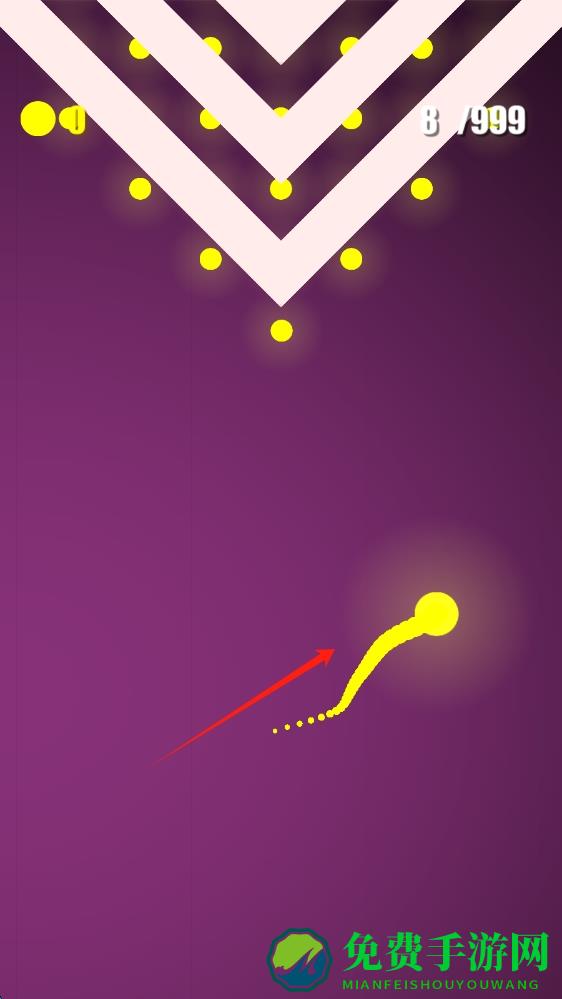 2、游戏中,滑动屏幕控制小球移动,躲避障碍,收集黄色光点,推进关卡进度,按住移动人物。
