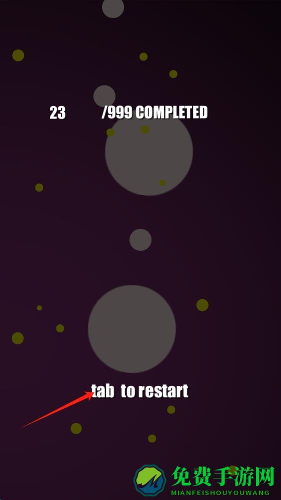 3、若小球碰撞失败,点击tab to restart,重新开始本关,调整路线,继续挑战,点击重开。