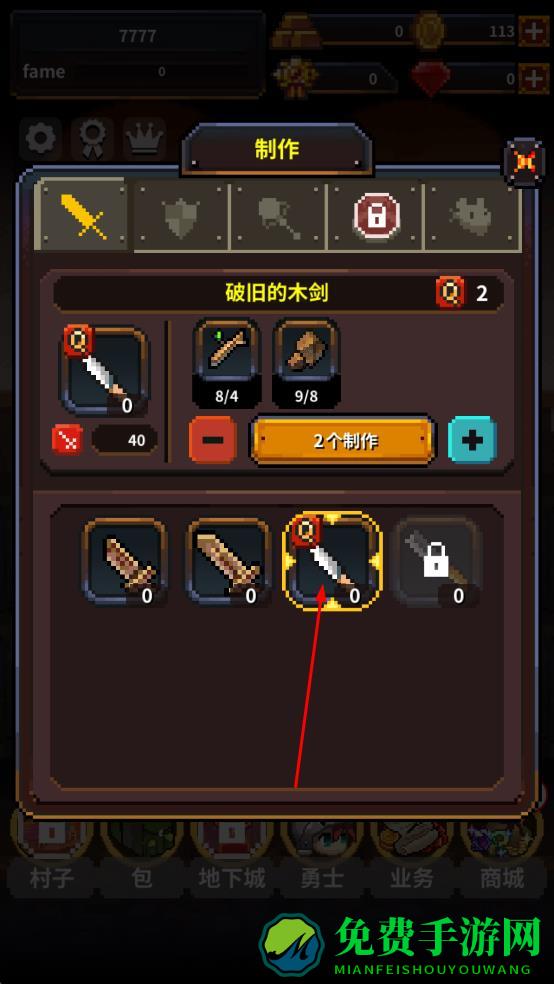 2、进入制作界面,收集木材、石块等材料,制作破旧的木剑等装备,提升角色战斗能力,为冒险做准备。