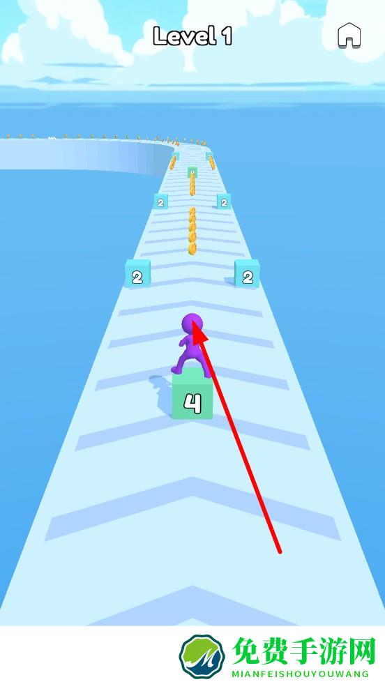 1、开局滑动屏幕定位角色,踩中初始数字方块启动奔跑,收集前方同数值方块,为后续游玩做好准备。