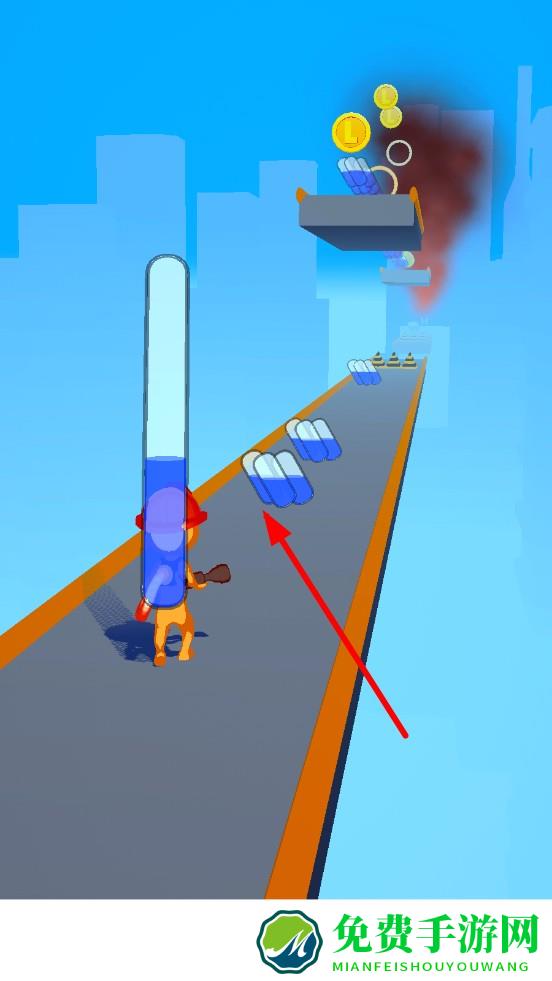 1、进入关卡,消防员自动前奔,滑动屏幕控制左右走位,收集路面蓝白胶囊填充试管,闪避尖刺、滚火球等障碍。
