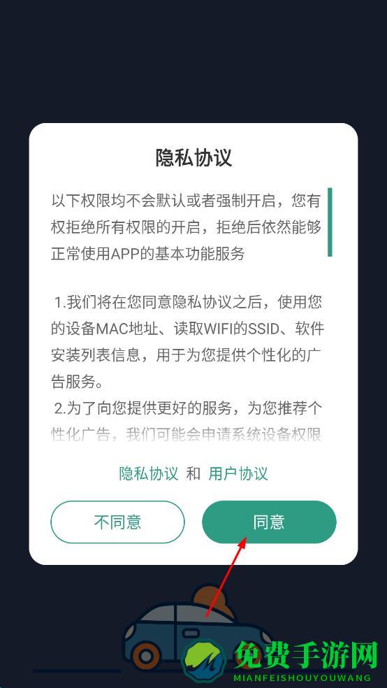 1、打开该自动化操作类APP,在隐私协议界面,仔细阅读相关内容后,点击同意,进入APP主界面。