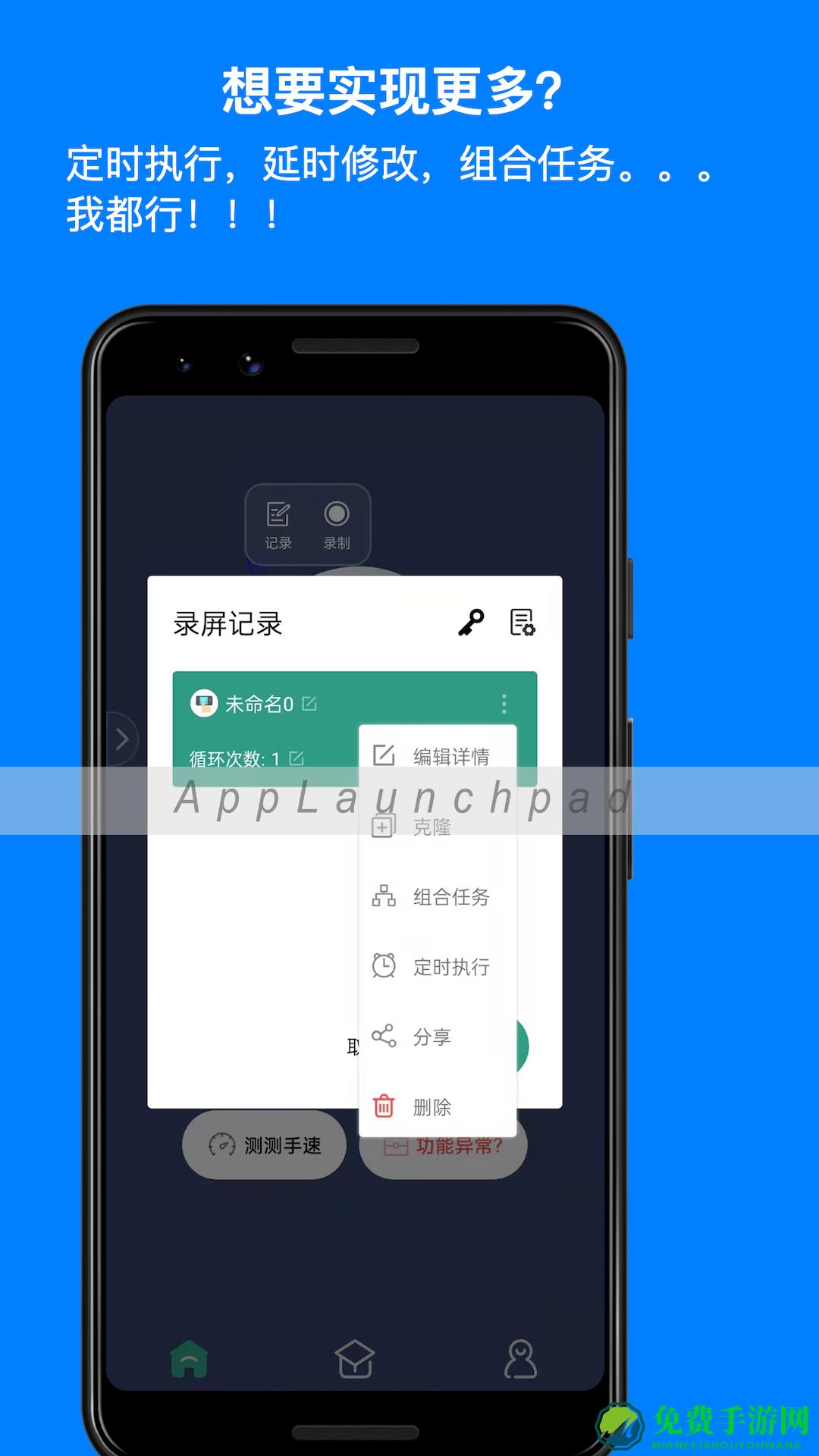 2.自动回放录制手势,只需要在屏幕上录制游戏或者应用的操作过程,自动点击器就能帮您回放您录制的操作过程。同时支持录制配置保存分享,录制配置定时执行,录制配置编辑等操作。