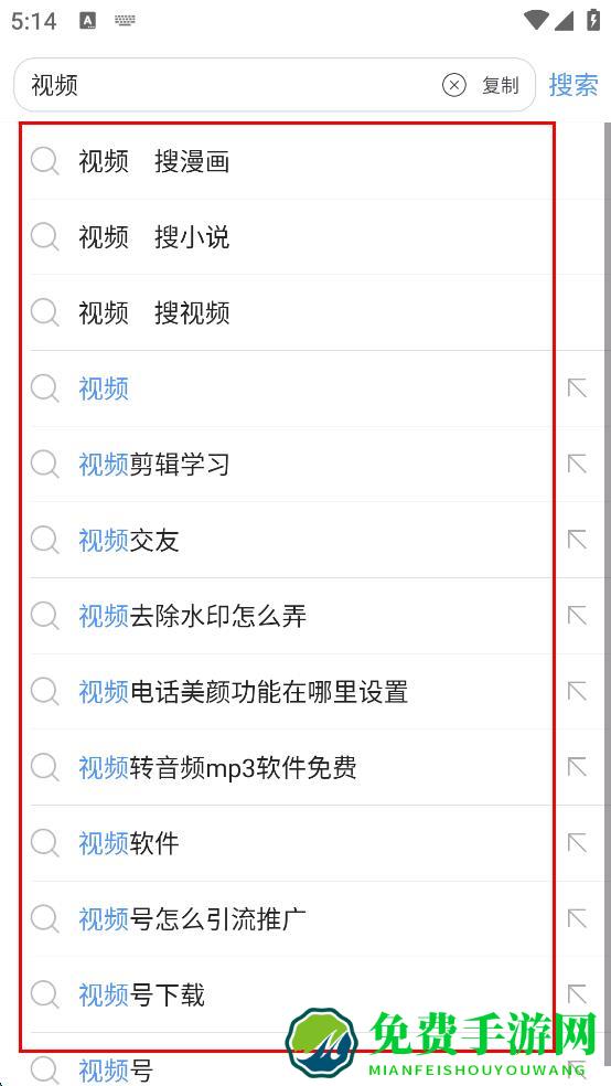 2、在搜索建议列表中,可看到“视频 搜漫画”“视频 搜小说”等多个选项,根据需求选择合适的搜索建议,点击进行搜索。