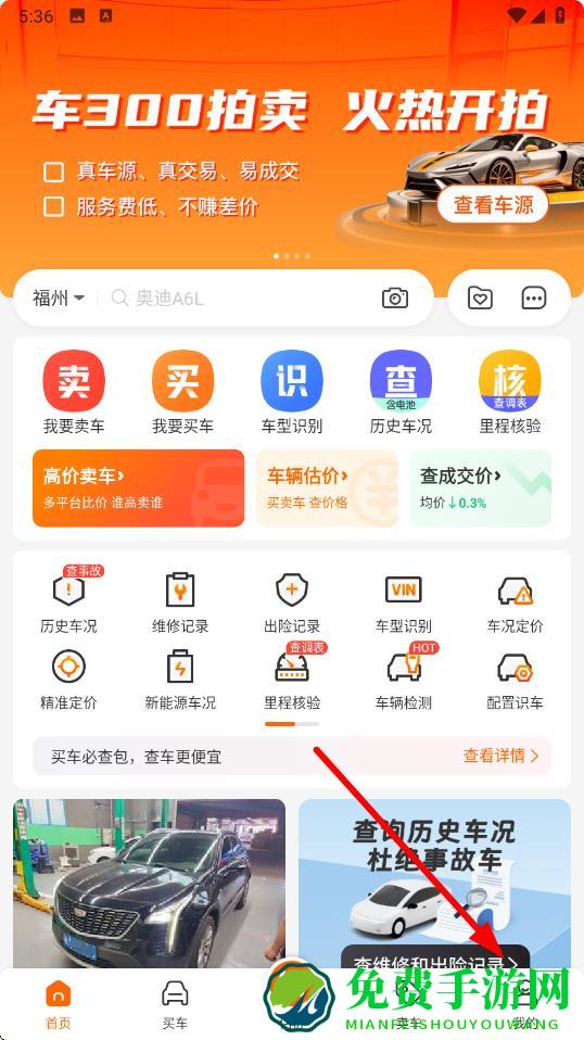 1、打开车300app,点击底部导航栏最右侧的我的选项,进入个人页面。