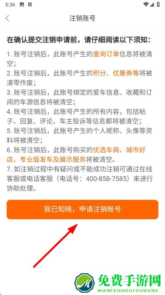 4、仔细阅读注销账号的相关须知,确认无异议后,点击我已知晓,申请注销账号按钮,按照后续提示完成账号注销操作。