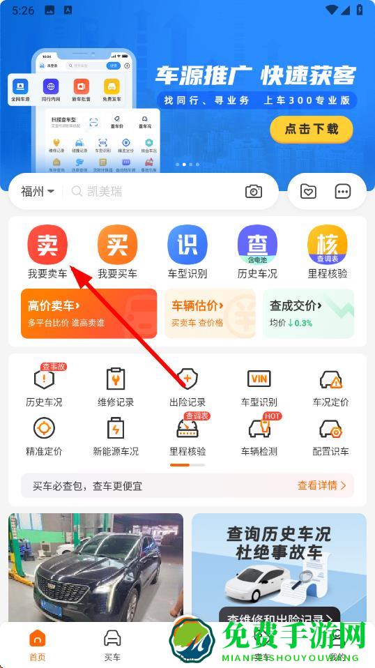 1、打开车300app,在首页点击我要卖车选项,进入卖车信息填写页面。