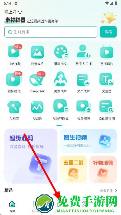 2、在APP首页,点击底部导航栏的创作工具选项,进入创作工具页面。