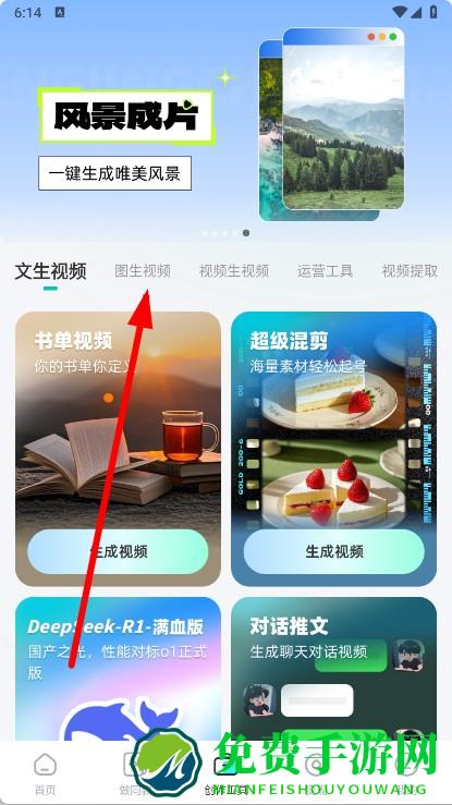 3、在创作工具页面,点击图生视频选项,进入图生视频素材选择页面。