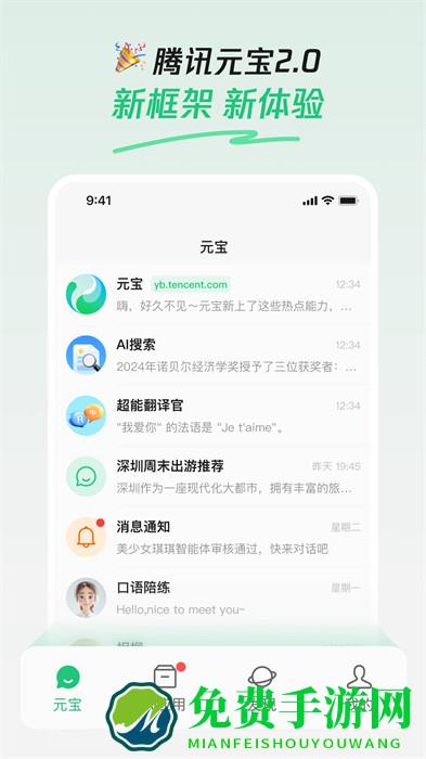 腾讯元宝ai软件是一款拥有各种先进ai功能的辅助软件,在日常的搜索以及写作等方面都能提高效率,同时整个软件还支持编辑文案以及翻译文案,帮助整个页面看起来更加的整齐,如果有需要翻译方面的需求,直接导入文件即可让ai协助操作,这里有着最基本的准确率,有需要的用户完全能直接来使用,不仅如此,目前这里的工具完全免费使用,无需大家付费来进行对话和创作,如果你也对ai非常的感兴趣,快来小编这里了解一下吧!