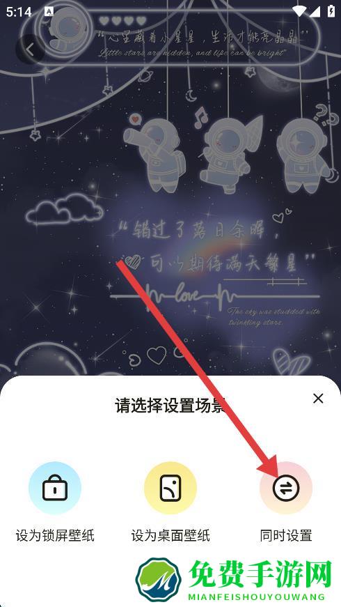 4、在弹出的请选择设置场景选项框中,根同时设置即可完成壁纸设置操作。