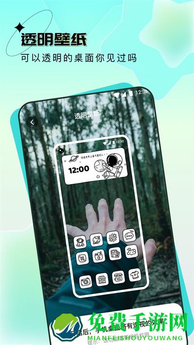 3、设置透明壁纸也是非常有趣,能看出来各种有趣的事情,让手机增加使用率。
