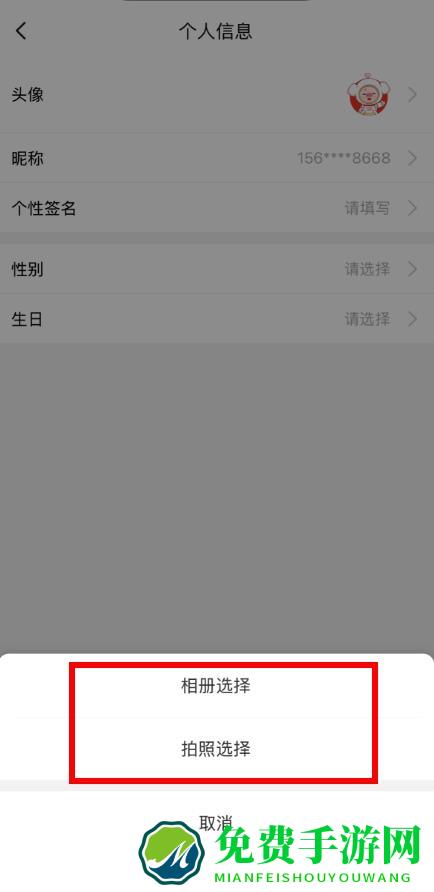 4、在弹出的选项中,选择相册选择从手机相册选取图片,或选择拍照选择即时拍摄照片作为新头像,完成头像修改。