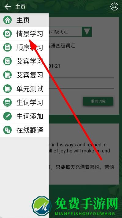 2、点击侧边栏的情景学习选项,进入情境学习页面。