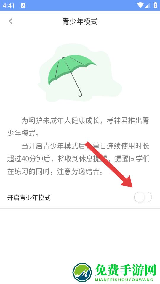 4、在青少年模式页面开启开启青少年模式的开关,完成设置。