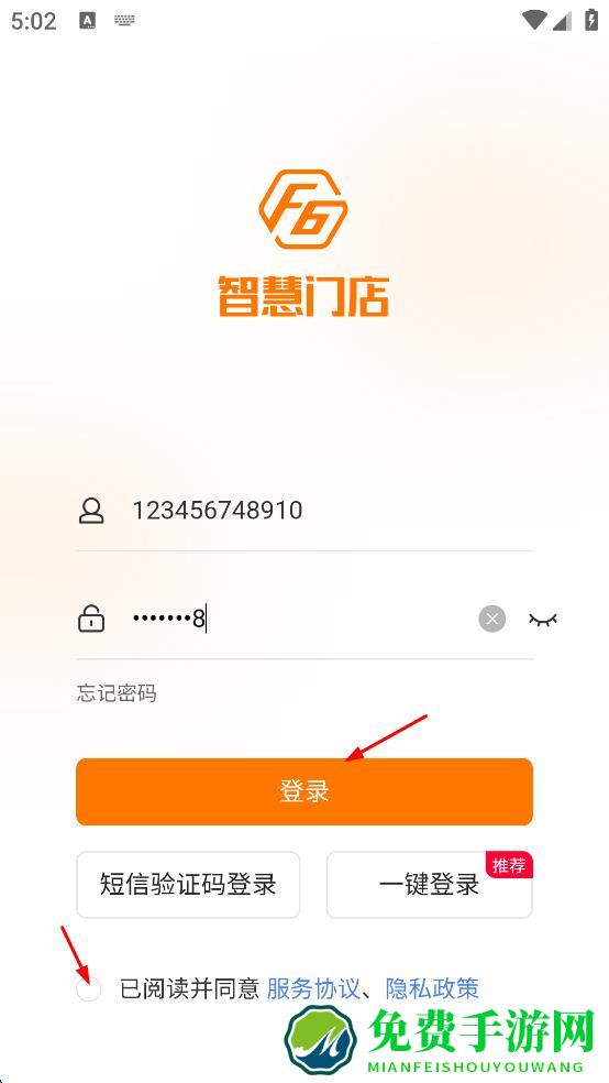 4、用户名或手机号、密码都填写完毕且勾选同意相关协议后,点击“登录”按钮,即可完成智慧门店APP的登录操作。