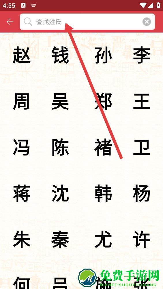 3、在百家姓氏页面,点击顶部搜索框,输入想要查找的姓氏。