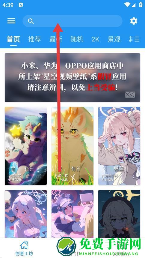 1、打开星空视频壁纸,点击首页顶部搜索栏。