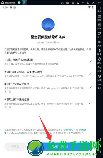 1、首先打开下载好的星空视频壁纸app,进入之前会提示用户查看协议,查看协议无问题后点击同意;