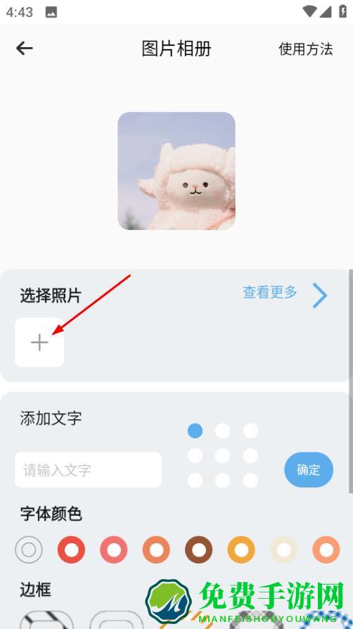 3、在图片相册设置页面,点击选择照片旁的+号,进入图片选择页面。