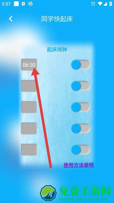 2、进入起床闹钟设置界面后,点击需要设置闹钟的按钮。