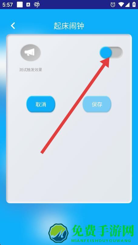 3、在弹出的闹钟设置页面,点击开关按钮开启闹钟。