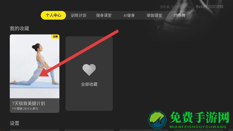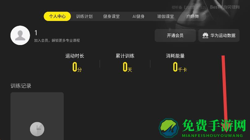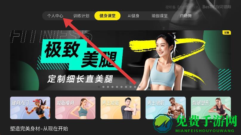1、打开当贝健身,点击顶部导航栏中的个人中心选项。