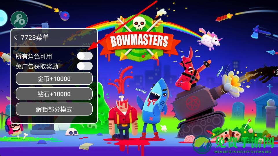 冷血射手是一款以弓箭射击为核心的卡通风格作品,又名弓箭手们,推出内置辅助菜单的无限金币无限钻石版本,支持中文适配,游戏汇集六十多位特色角色,从雷神、斯巴达等经典形象到西瓜大妈、黑洞男等创意角色应有尽有,每个角色搭载专属武器与技能机制。