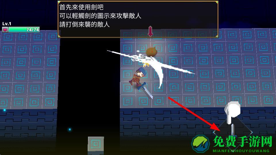4、战斗时,轻触剑的图示可攻击敌人,按照提示使用剑攻击来袭的敌人,可顺利打倒敌人并推进游戏的进程。