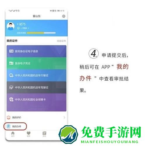 5.最后完成申请提交,可点击“爱山东”App—“我的”—“我的办件”选项,查看审批结果。