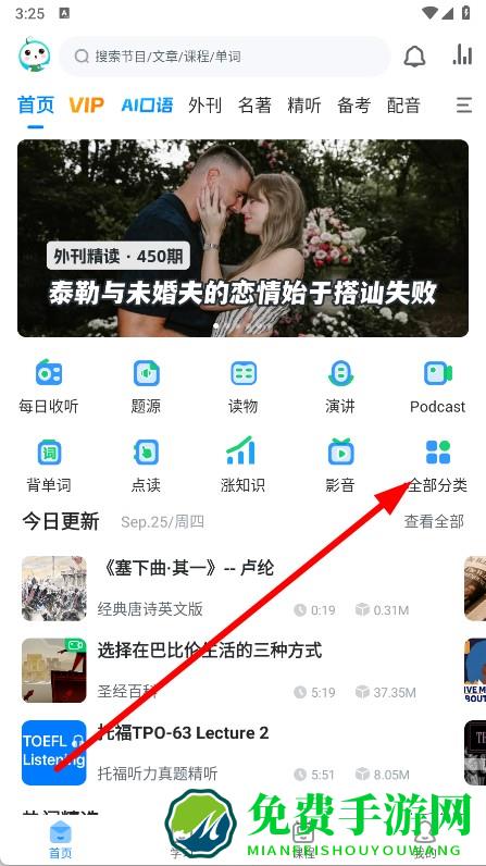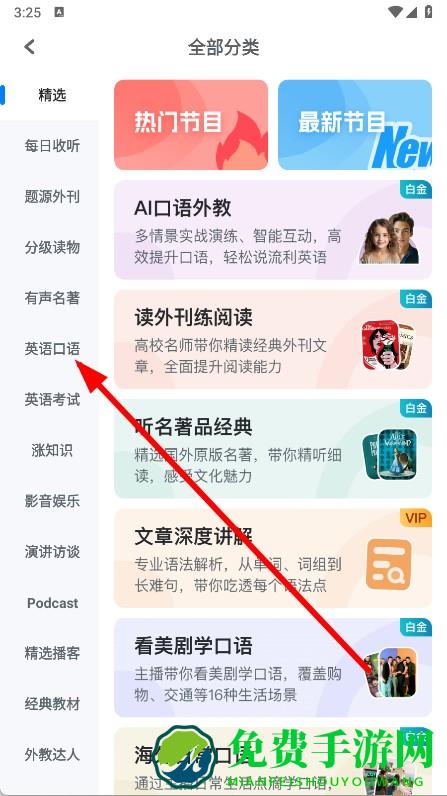 2、在全部分类页面,点击左侧列表中的英语口语。