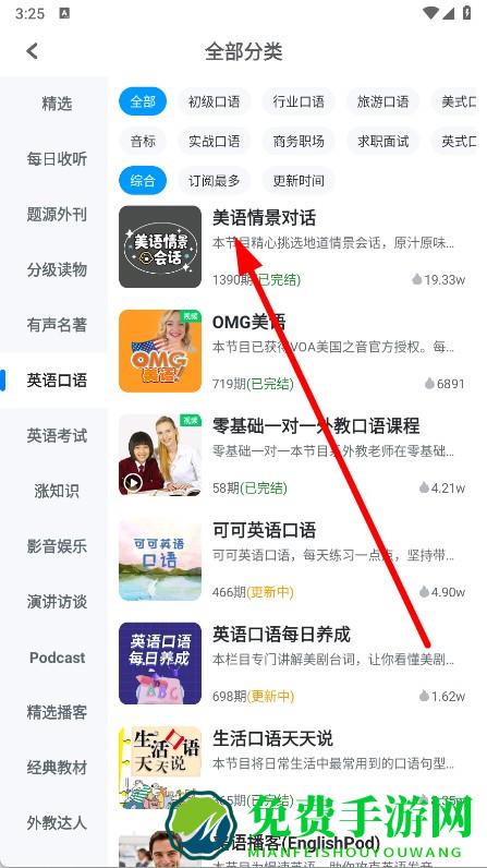 3、在英语口语分类下,选择感兴趣的节目并点击。
