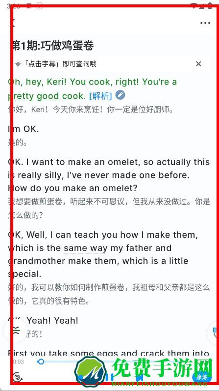 5、进入播放页面后,查看文本内容并收听音频,开启英语学习。
