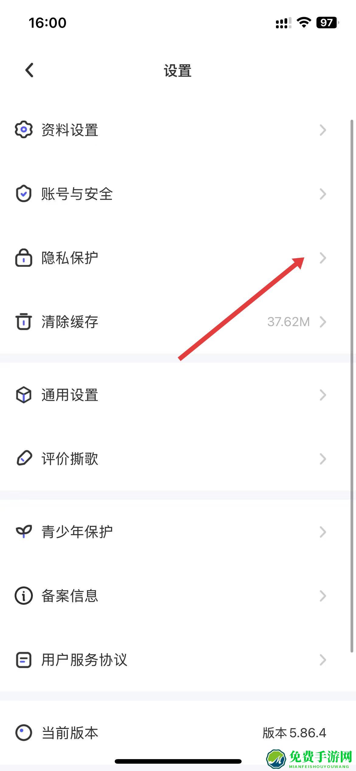 2、进入设置界面,找到隐私保护选项,点击其右侧箭头,进入隐私保护设置页面。