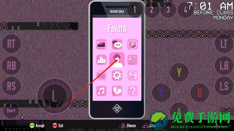 3、点击手机界面中的对应功能图标,使用Favors功能,建立关系,提升游戏声望和进展。