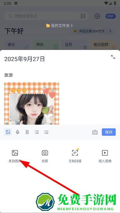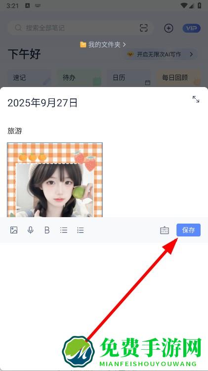 5、完成笔记内容编辑后,点击右上角的保存按钮,即可将带有图片的笔记保存。